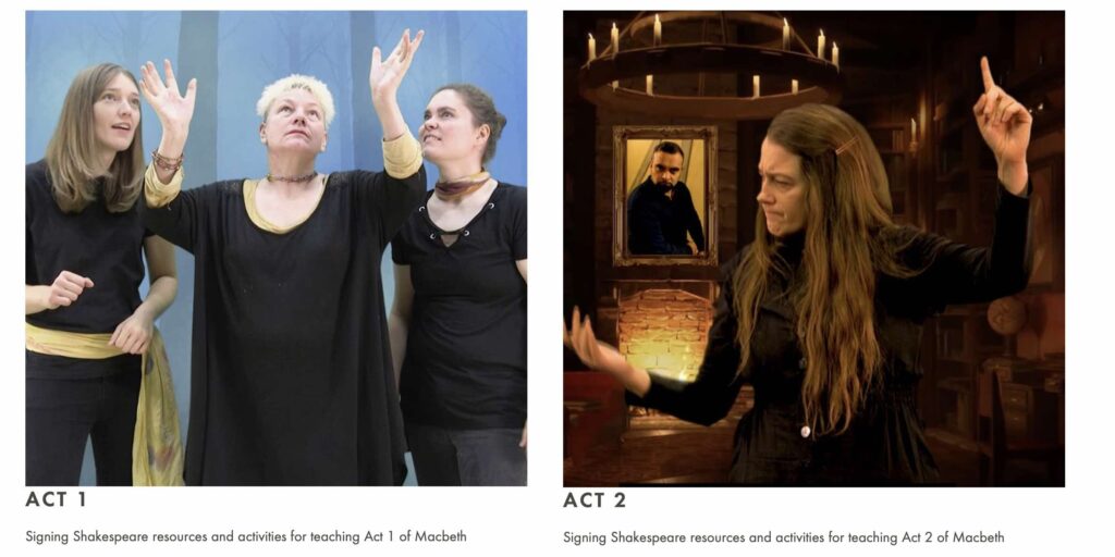 University of Birmingham academics have been working on a project to make Shakespeare accessible for D/deaf children in schools. Resources for Macbeth can be found on the RSC’s website: https://www.rsc.org.uk/learn/schools-and-teachers/teacher-resources/signing-shakespeare-for-deaf-students Deaf actor, Sophie Stone, who plays Lady Macbeth in the films, and has played Jaques at Shakespeare’s Globe commented: “This has been a passion project…